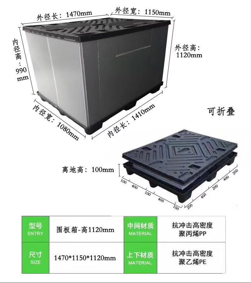 | 1470*1150*960圍板箱 | 1470*1150*960 | 1T | 4T |